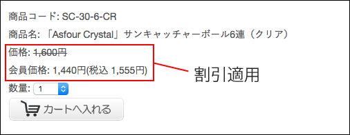 サンキャッチャー協会会員登録完了の通知がきたら、以降の商品ページで割引価格が表示されるようになります。